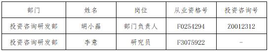 本公司具有中國證監會核準的期貨投資咨詢業務資格